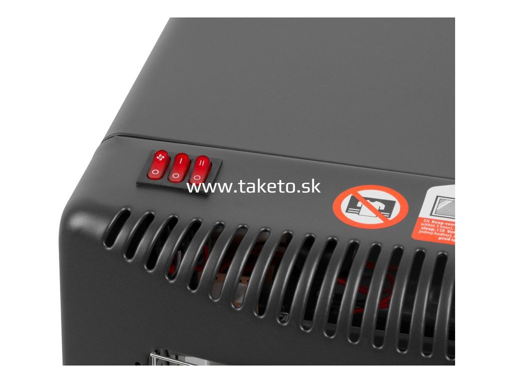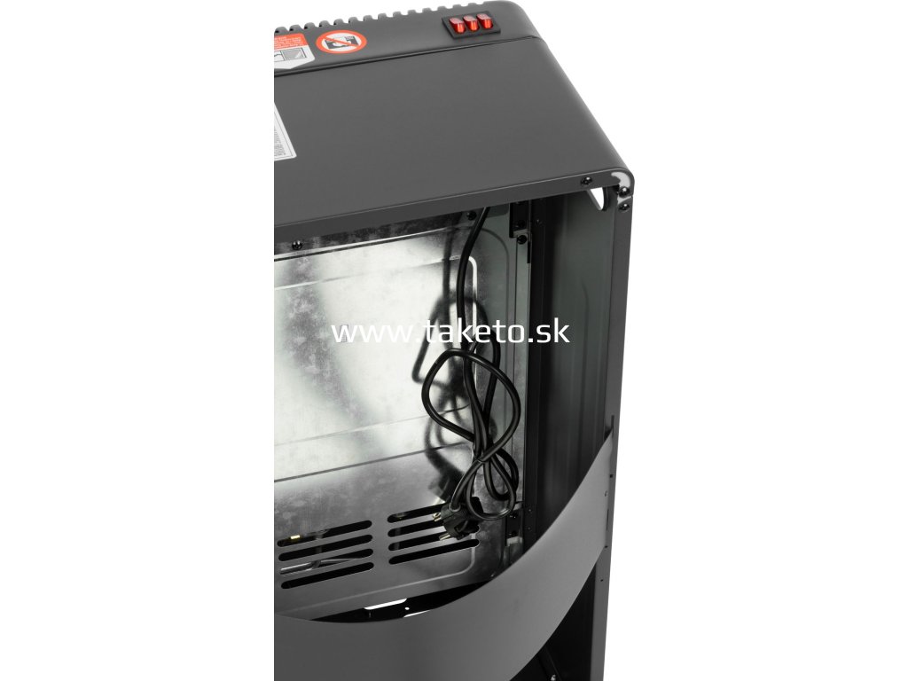 - Kombinovaný ohrev – plynový horák (4,2 kW) + elektrický ventilátor (1,2 kW)