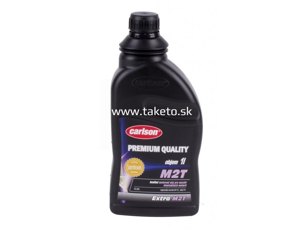 Motorový olej CARLSON® EXTRA M2T SAE 40 je určený na mazanie moderných, vysokootáčkových dvojtaktných benzínových motorov, vrátane športových verzií a taktiež motocyklov, snežných skútrov, kosačiek na trávu a pod. Olej obsahuje zmes vysoko rafinovaných ropných frakcií (základového oleja) zušlachtujúcich prísad. Kvalitný motorový olej zodpovedá špecifikácii SAE 40 a normám API TC, JASO FC.
