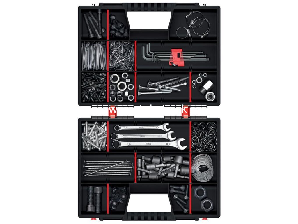 - organizér je vybavený dvoma zámkami, ergonomickým držadlom a priehľadným vekom, takže jeho obsah je vždy dobre viditeľný