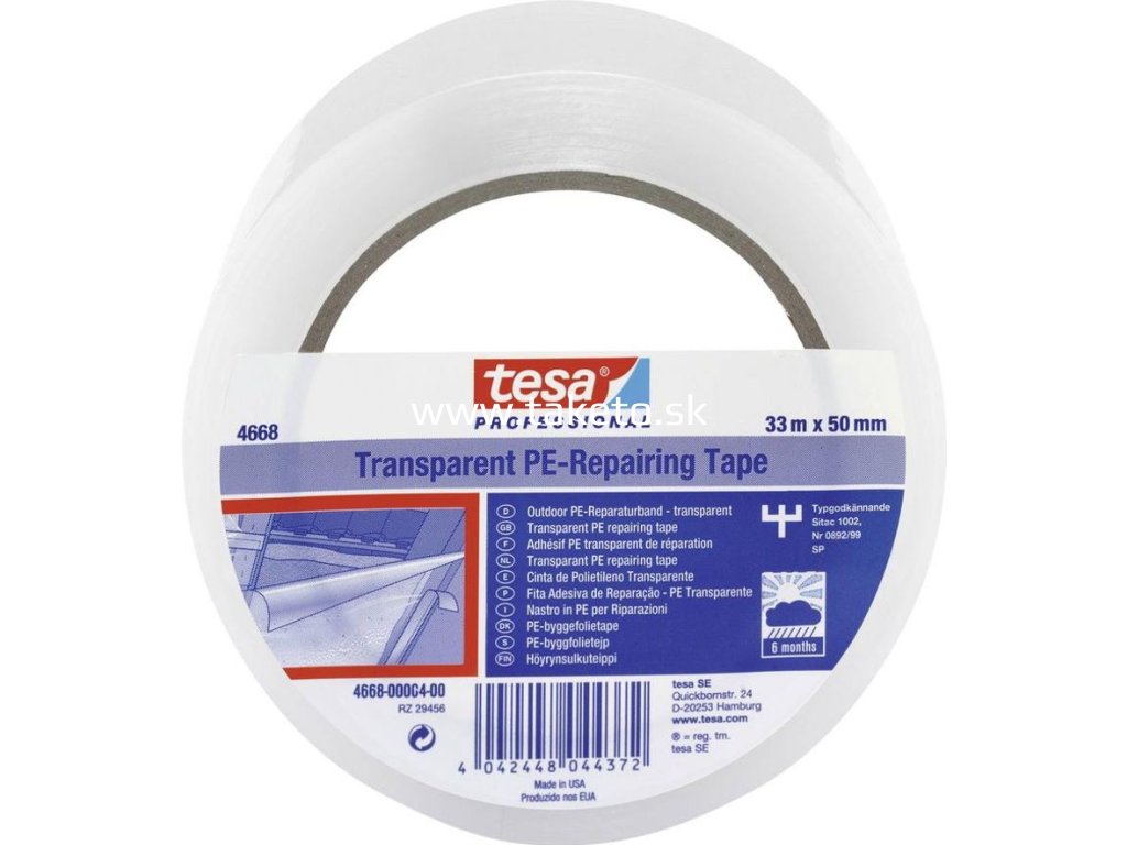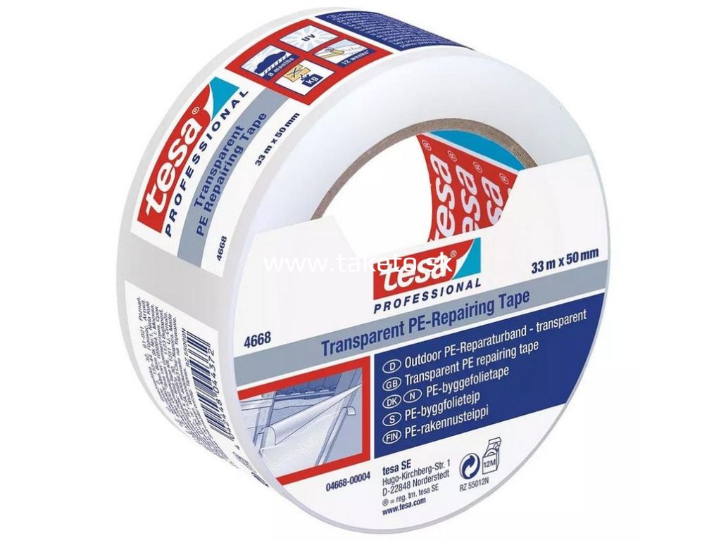 Páska tesa PRO, opravná je polyethylenová transparentná páska z PE fólie a akrylového lepidla. Je to veľmi silná páska pre širokú škálu aplikácií, často používaná pre spájanie LDPE fólií na stavbách, ale má širokú škálu použitia i v ďalších aplikáciách, kde je treba spájať či opravovať fólie či iné priehľadné materiály. Páska má vysokú odolnosť voči UV žiareniu, starnutiu, oteru a pôsobeniu vplyvu počasia. Páska je vďaka masívnemu fóliovému nosiču odolná pôsobeniu rozpúšťadiel. Rozmer pásky je 33 m x 50 mm.