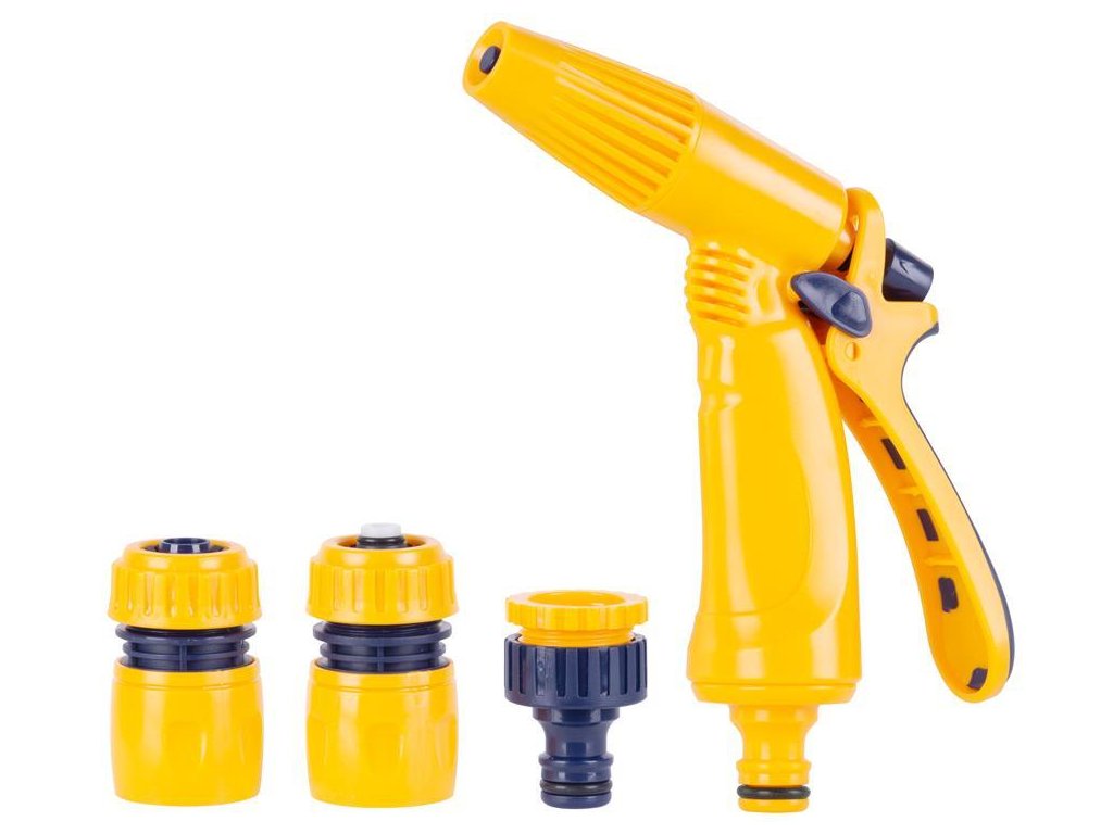 Zavlažovacia pištoľ Strend Pro Garden s nastaviteľnou hlavou, poistkou a regulátorom riadenia toku vody má 2 nastaviteľné funkcie striekania, a to : prúd a hmla. V balení nájdete klasickú spojku 1/2", STOP spojku 1/2", adaptér 1/2"-3/4" a pištoľ.