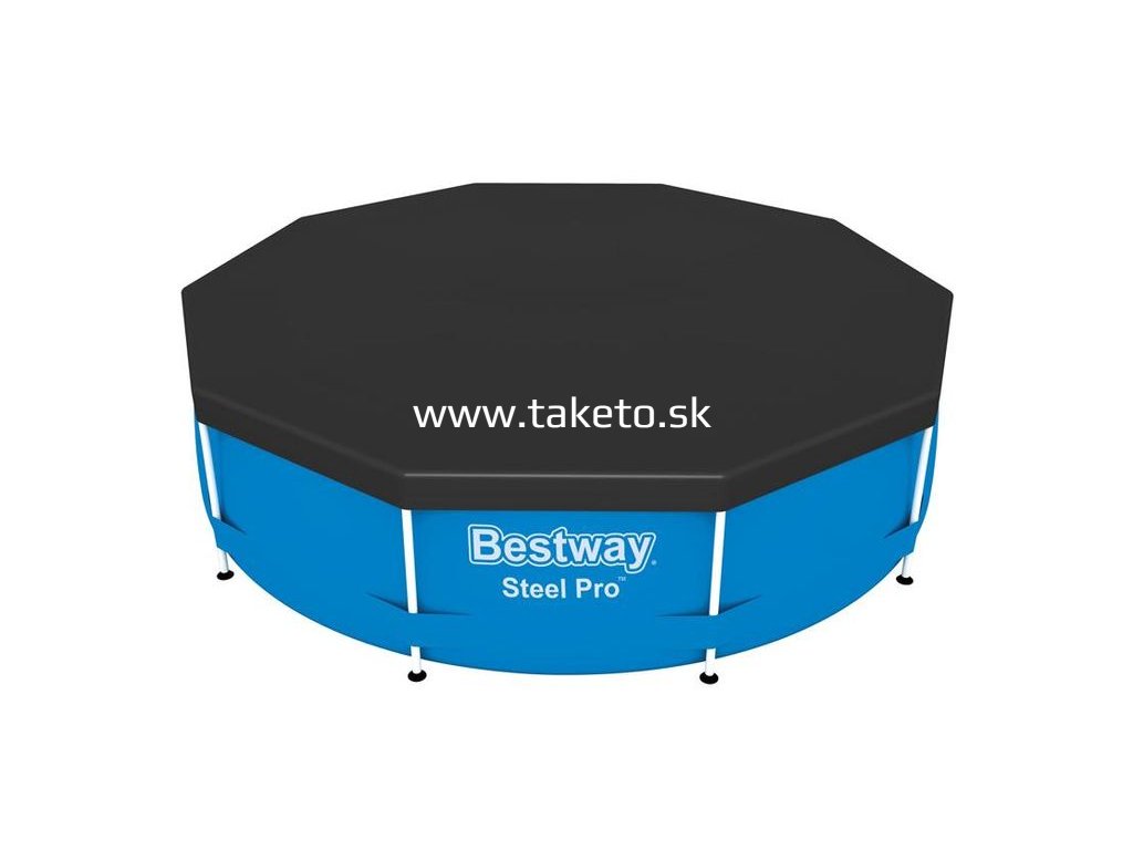 Plachta na bazén ochráni váš bazén pred nečistotami a zároveň pomáha udržiavať teploty vody v bazéne. Efektívne zabráni vniknutiu zvyškov, listov a iných nečistôt do vášho bazéna. Plachta tiež eliminuje rast rias a znižuje potrebné množstvo nákladných chemikálií. Plachta je vybavená praktickými výpustnými otvormi, ktoré zabraňujú hromadeniu vody na povrchu plachty. Plachta sa ľahko inštaluje, je extrémne odolná a disponuje lanami na zaistenie k bazénu. Je vhodná pre bazény Steel Pro™ Frame Pools s priemerom 3,05 m.