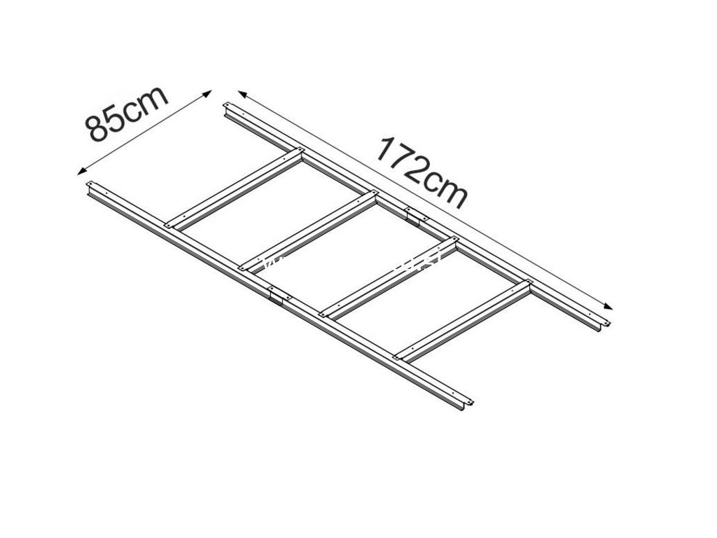 Podlahová konštrukcia vhodná pre záhradný domček. Slúži ako podklad pre podlahovú krytinu. Poskytuje stabilitu a pevnosť tak, aby domček stál rovnomerne a nehýbal sa. Vďaka podlahovej konštrukcii sa voda nedostane dovnútra a neznehodnotí podlahu ani vybavenie. Rozmery: 85x172 cm.