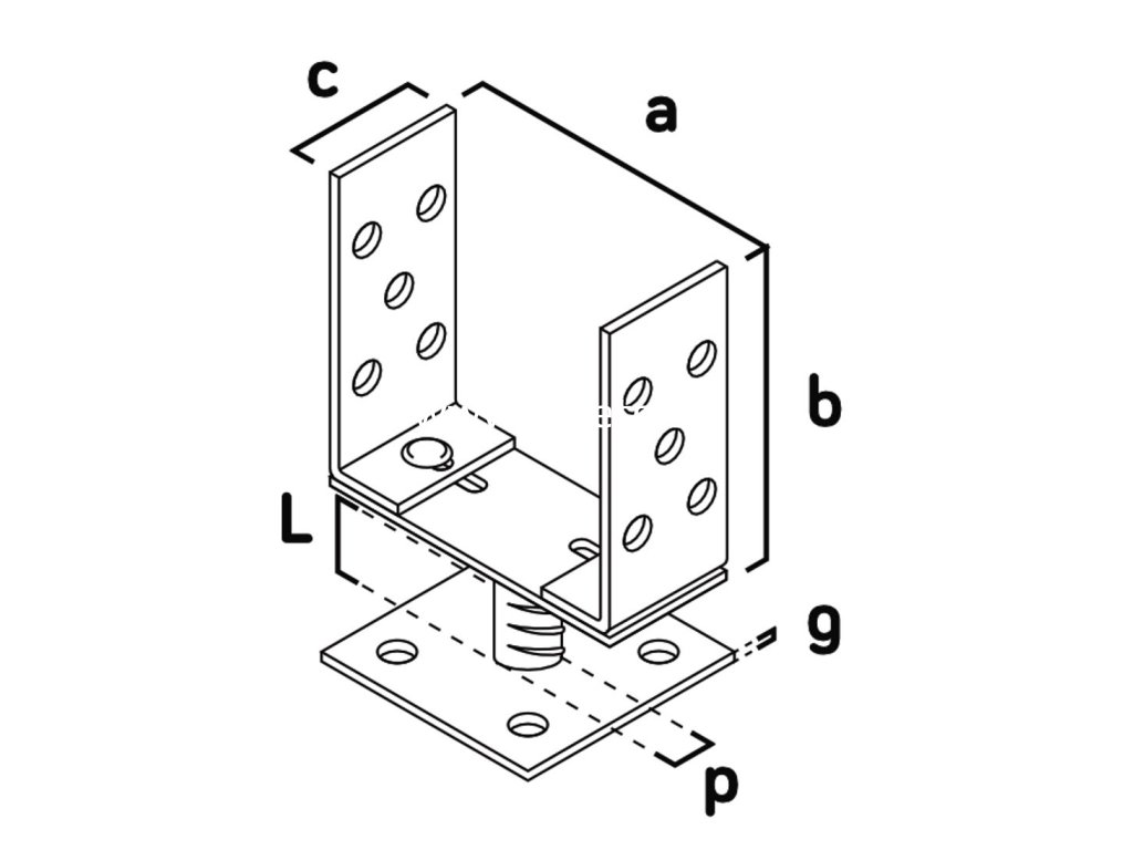 Podpera na hranoly ASU1, 0-125 mm, Zn, pätka nastaviteľná, podstavec + praktický pomocník k objednávke