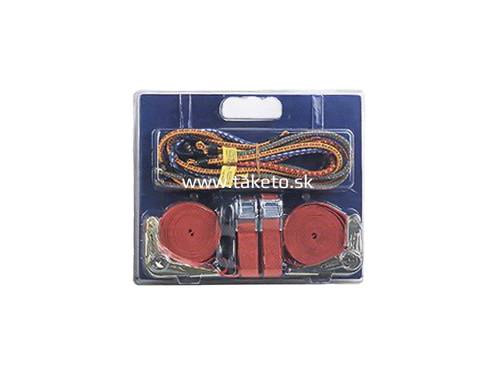 Popruh upínací Strend Pro, 25 mm, L-5 m, max. 250/200/250 kg, bal. 2x pás s račňou + 2x pás so sponou + 8x upínacia guma + praktický pomocník k objednávke