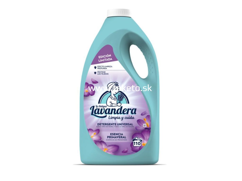Lavandera prináša tradíciu a znalosti prania do modernej doby. Prací gél sa stará o vaše tkaniny, jemne ich čistí od nečistôt a prevonia váš šatník príjemnou a dlhotrvajúcou jarnou vôňou . 110 pracích dávok.