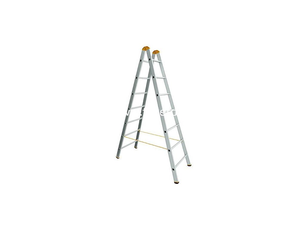 Dvojitý rebrík pre využitie v domácnosti aj v priemysle.Popruh medzi stranami zabezpečuje stabilitu, môžete sa preto postaviť na obe strany naraz.
