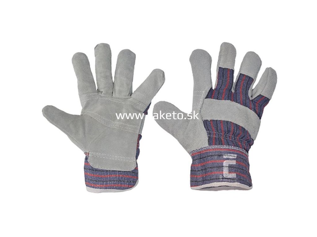 - kombinované rukavice - vystužená dlaň zo šedej hovädzej štiepenky - chrbát a manžeta z pruhovanej bavnenej tkaniny - podšívka v dlani.Normy: