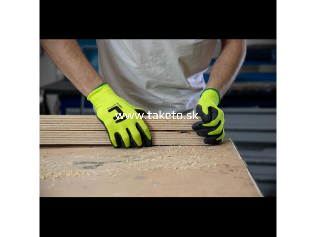 • bezšvové pletené rukavice zo syntetických priadzí • na dlani a prstoch povrstvené latexom