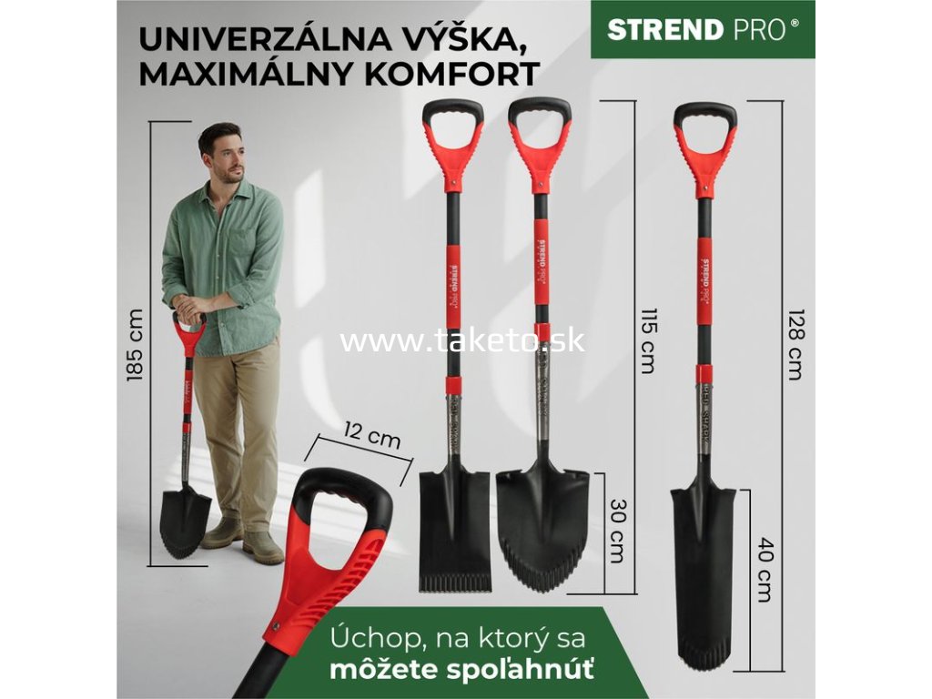 - násada: drevená s D-rukoväťou – pevná, ergonomická a prirodzená na dotyk