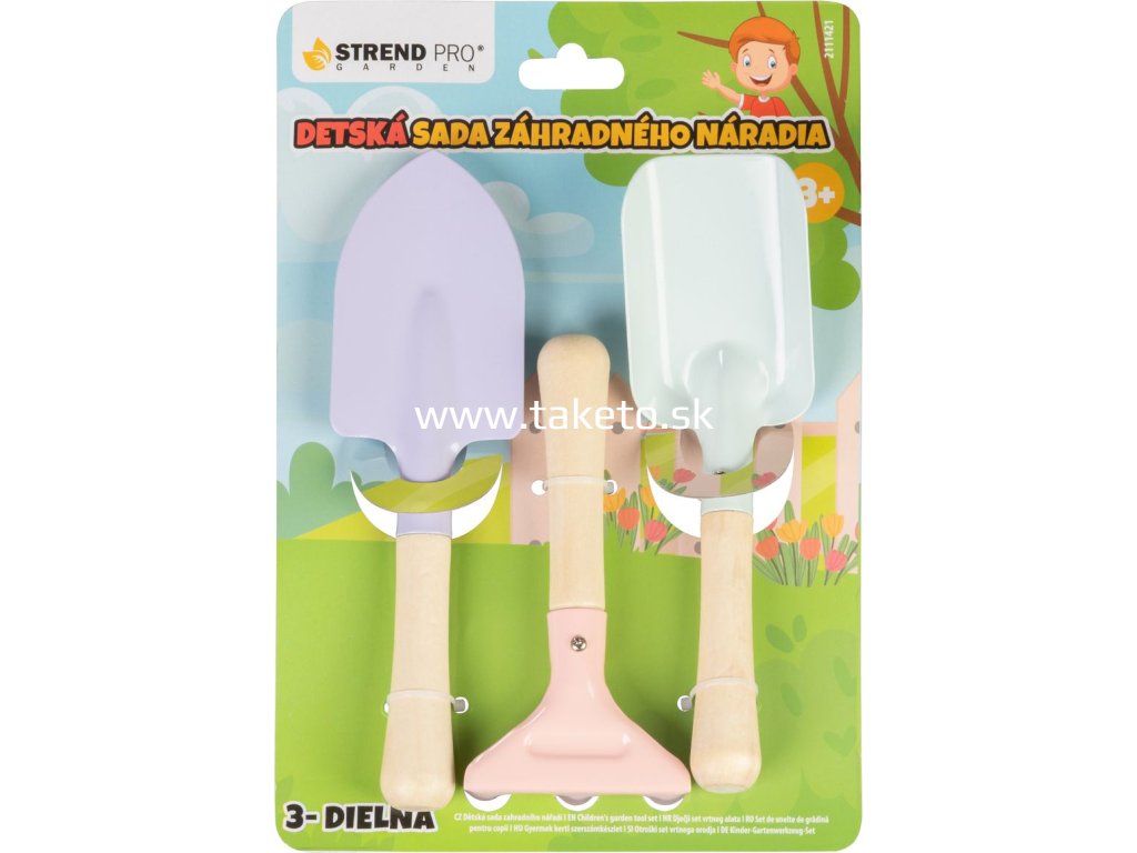Sada náradia Strend Pro, záhradnícka, detská, 3-dielna, drevo + oceľ, lopatka hrable a rýľ + praktický pomocník k objednávke