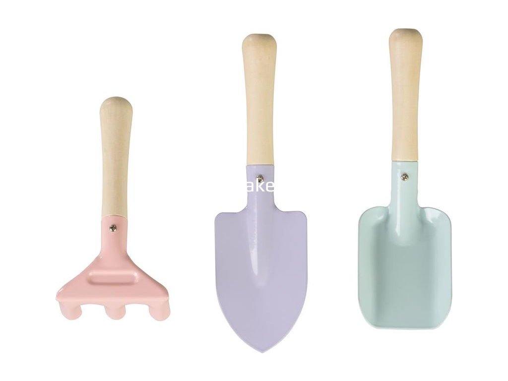- 3-dielna sada: Obsahuje lopatku, hrable a rýľ, základné nástroje prispôsobené pre detské ruky, čo umožňuje deťom aktívne sa podieľať na záhradných prácach.