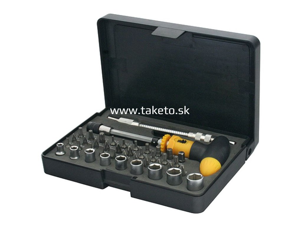 Sada bitov a hlavíc YF40085 . 42 dielna, s T-skrutkovačom a flexi nástavcom, Cr-V + praktický pomocník k objednávke