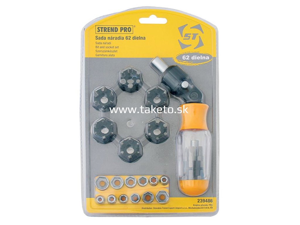 Sada bitov a hlavíc Strend Pro YF40239 . 62 dielna, s račňovým skrutkovačom s kĺbom + praktický pomocník k objednávke