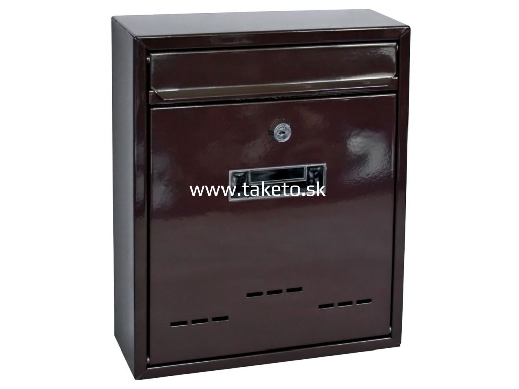 Elegantná poštová schránka v hnedej farbe. Obsahuje časť na letáky.
