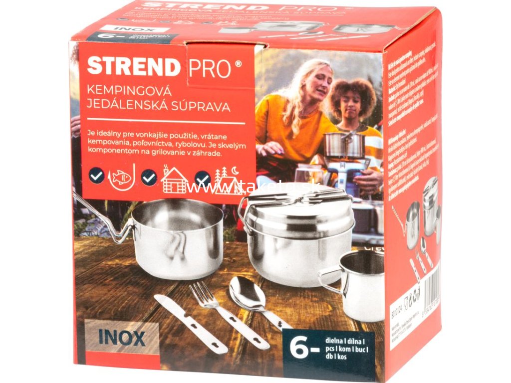 Praktická kempingová súprava Strend Pro je ideálnym spoločníkom na výlety do prírody, stanovanie, turistiku alebo ako výbava do záhrady. Sada obsahuje nevyhnutné komponenty pre prípravu a konzumáciu jedál, vyrobené z odolnej nehrdzavejúcej ocele (INOX), čo zaručuje dlhú životnosť a jednoduché čistenie.