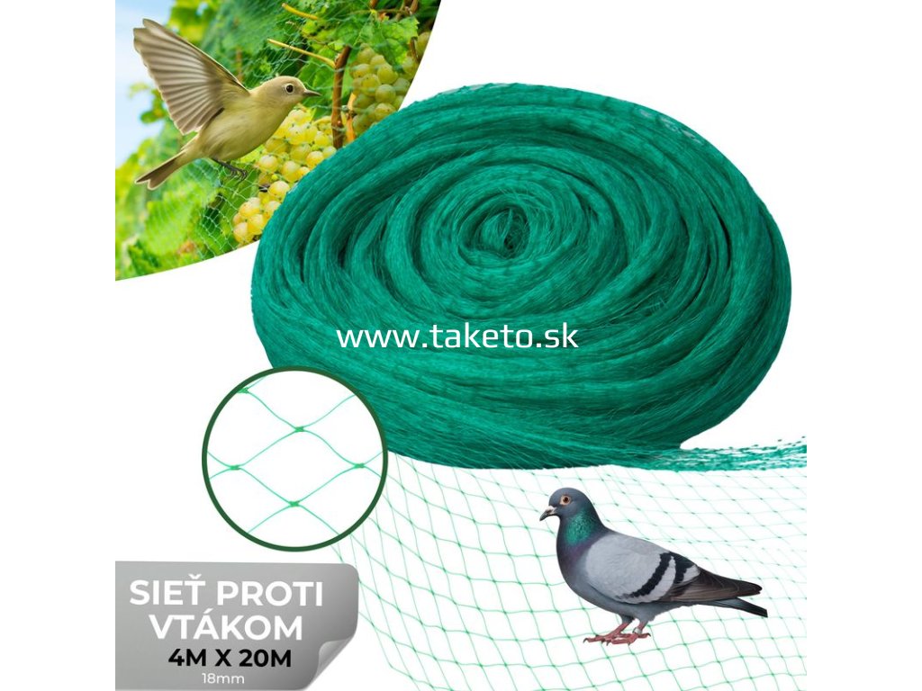 - Jemné oká– veľkosť oka 18 mm účinne bráni prenikaniu vtáctva, pričom neobmedzuje rastliny.