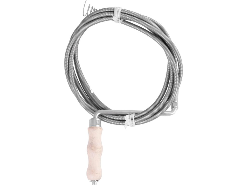 Drôtená špirála s dĺžkou 15 m je určená na čistenie upchatých odpadových rúr bez použitia chemických látok. Na jednej strane je ukončená drevenou rukoväťou, a na druhej strane ostrou pružinou.Dodatočné parametre