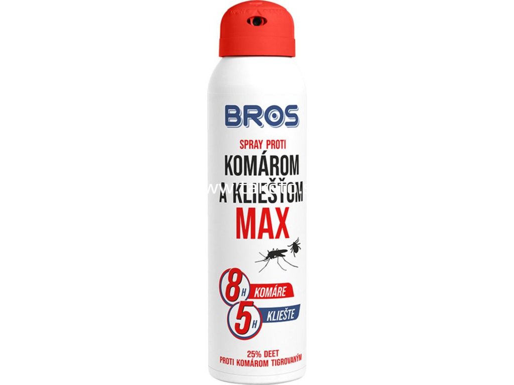 Sprej Bros proti komárom a kliešťom a ďalším druhom hmyzu, ktoré sajú krv. Vysoká koncentrácia (30 %) aktívnej zložky DEET zaručuje dlhodobú ochranu proti hmyzu a chorobám, ktoré prenáša.. Sprej odpudzuje komáre - aj tropické komáre (po dobu 8 hod), kliešte (po dobu 5 hod) a muchy (po dobu 7 hod). POUŽITIE: Sprej sa aplikuje na oblečenie a miesta náchylné k uhryznutiu zo vzdialenosti 15 cm. Pri nanášaní na hlavu a krk sa má najprv produkt nastriekať na dlane rúk a následne naniesť na hlavu a krk.