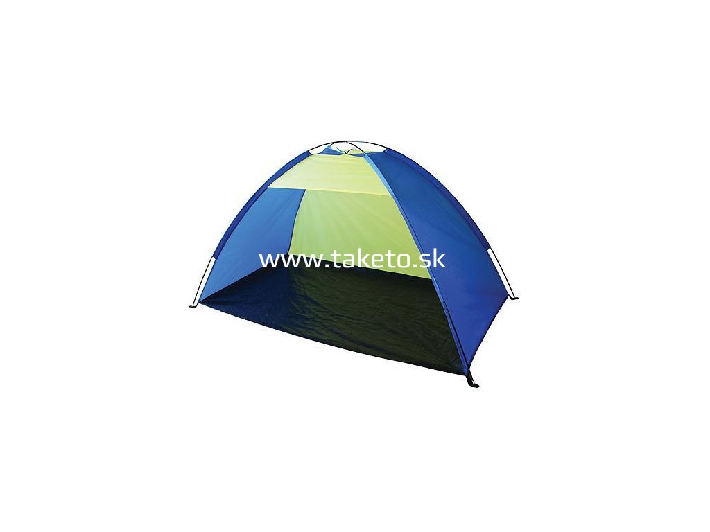 Modro-zelený stan je vhodný pre dospelých aj deti. Nemá prednú plachtu, ktorou sa dá úplne zatvoriť. Vaše deti sa tak môžu hrať v stane a pritom ich budete mať stále na očiach. Stan je vyrobený z polyesteru odolného voči UV žiareniu a vode. Stan si udržiava pevnú konštrukciu pomocou častí spevnených sklolaminátom. Rozmery sú 2 x 1,2 x 1 m.