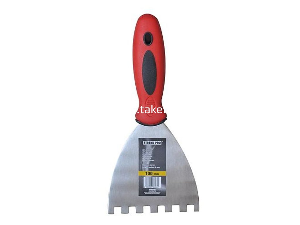 Murárska stierka Strend Pro S8006 je spoľahlivý nástroj s dĺžkou 100 mm a zubmi vo veľkosti 08 mm, vyrobený z kvalitného nerezu. Je ideálny pre dokonalé vyrovnanie omietky alebo sadrokartónu pri vašich stavebných projektoch.