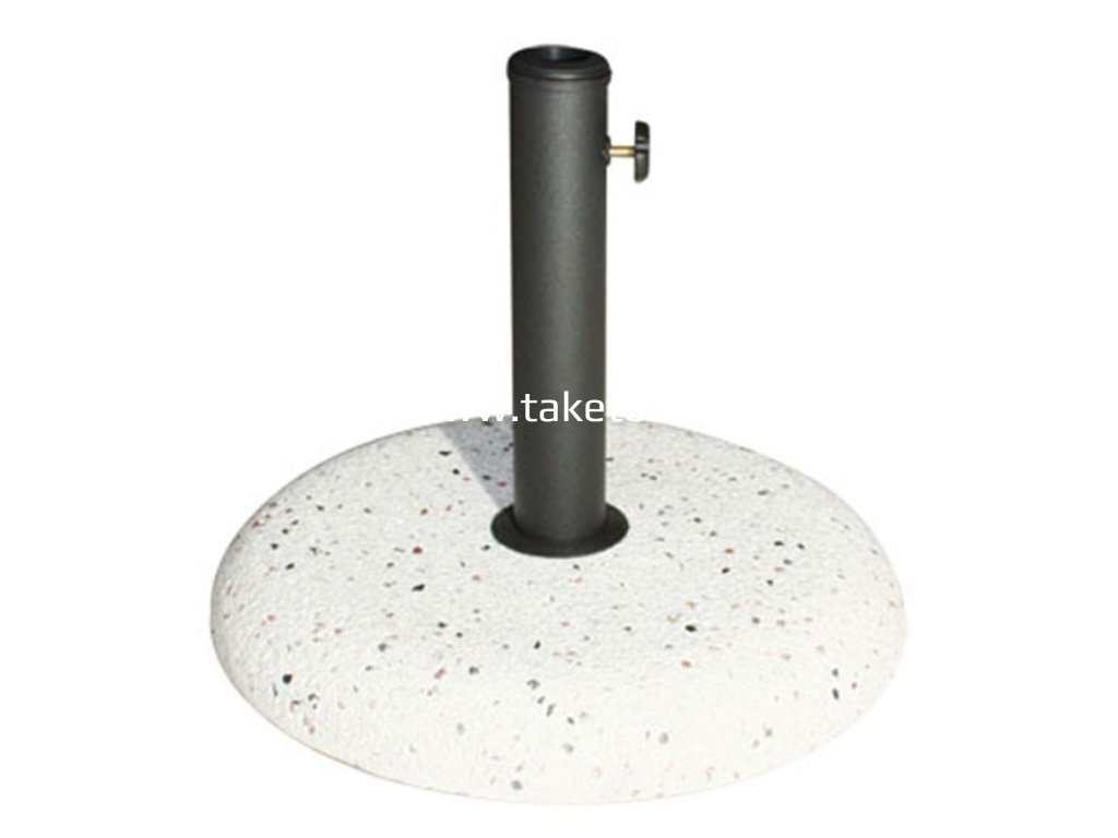 Stojan na plážový slnečník/dáždnik sa skladá z dvoch častí. Prvou z nich je šedá tyč s výškou 33 cm vychádzajúca z podstavy. Do tyče sa nasunie slnečník alebo dážnik a zaistí sa príslušným kolieskom. Maximálny priemer možnej upevnenej tyče je 38 mm. Druhou časťou je samotná biela podstava, vyrobená z pevného, živicového materiálu. Priemer podstavy je 43 cm. Váha stojanu je 21,26 kg, čím sa teda nemusíte báť, že by vám mohol vietor slnečník odfúknuť alebo vyvrátiť.