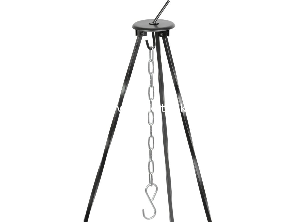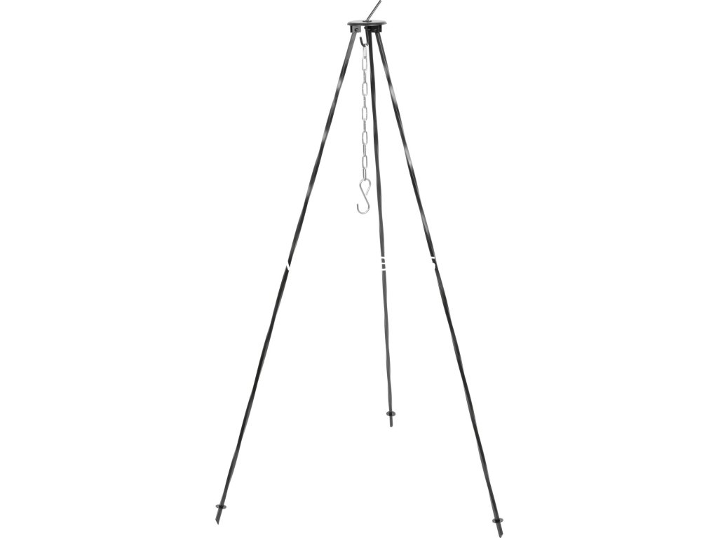 StojanCastler 1,2 mjepevný a stabilnýdržiak určený na závesné kotlíky pri vonkajšom varení. Vyrobený z odolnej ocele s priemerom 8 mm, poskytuje vysokú nosnosť a stabilitu pri príprave jedál nad otvoreným ohňom. Stojan je vybavenýhákom s nastaviteľnou reťazou, ktorá umožňuje regulovať výšku kotlíka nad ohniskom, čím si jednoducho prispôsobíte intenzitu varenia. Vďaka svojej konštrukcii je skladný a ľahko prenosný, čo ho robí ideálnym na kempovanie, pikniky či záhradné varenie.
