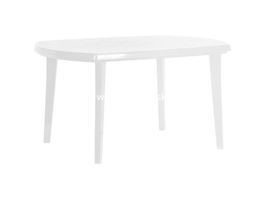 Jednoduchý biely plastový stôl je určený pre vonkajšie využitie. Stôl je možné umiestniť do záhrady alebo na terasu. Výhodou stola je otvor na slnečník v strede užívateľskej plochy, ktorý vám poskytne príjemné tienenie. Stôl je vďaka plastovému povrchu veľmi pevný, ale tiež ľahký na údržbu a skladanie. Rozmery stola sú 137 x 90 x 73 cm. Jeho hmotnosť je iba 6,5 kg, vďaka čomu dokážete stôl jednoducho premiestniť na potrebné miesto.