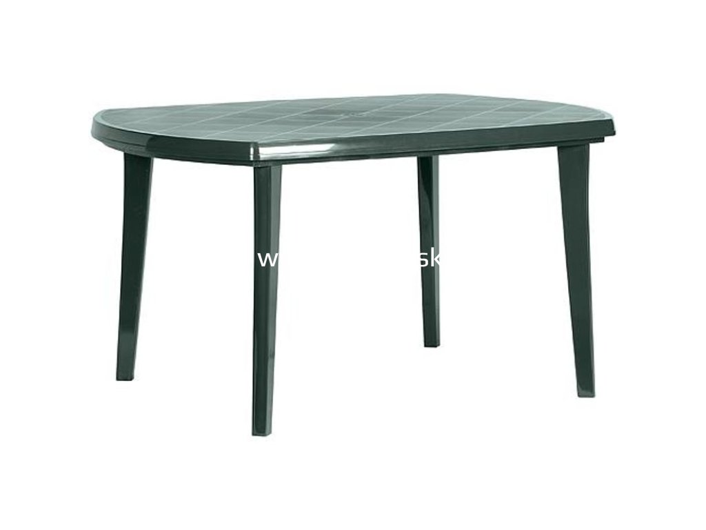 Jednoduchý zelený plastový stôl je určený pre vonkajšie využitie. Stôl je možné umiestniť do záhrady alebo na terasu. Výhodou stola je otvor na slnečník v strede užívateľskej plochy, ktorý vám poskytne príjemné tienenie. Stôl je vďaka plastovému povrchu veľmi pevný, ale tiež ľahký na údržbu a skladanie. Rozmery stola sú 137 x 90 x 73 cm. Jeho hmotnosť je iba 6,5 kg, vďaka čomu dokážete stôl jednoducho premiestniť na potrebné miesto.