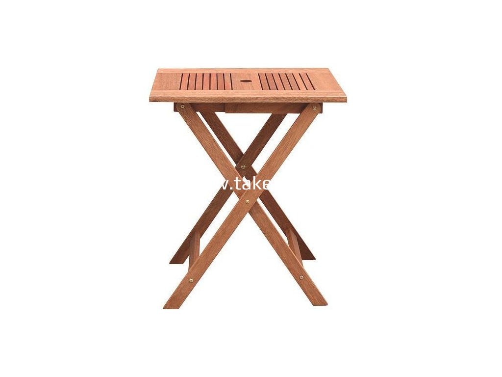 Menší drevený stôl je určený pre umiestnenie do vonkajších priestorov. Stôl je celodrevený, pokrytý prírodnou farbou, ktorá ochraňuje drevo pred poškodením. Rozmery stola sú 45 x 60 x 70 cm. Stôl je možné umiestniť aj na menšie oblasti, ako napríklad na balkón. Súčasťou vrchnej užívateľskej dosky stola je otvor, ktorý slúži pre umiestnenie slnečníka. Vzhľadom k veľkosti stola je potrebné zvoliť slenčník s menším priemerom inak hrozí riziko jeho vyvrátenia.