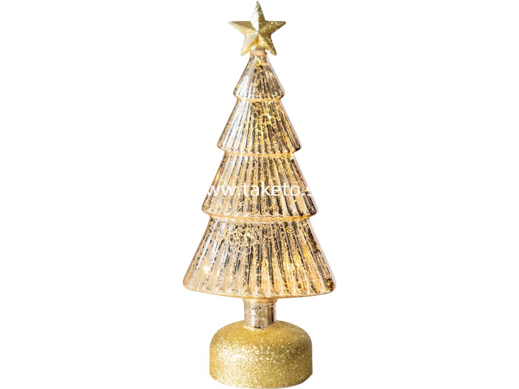 Stromček MagicHome Vianoce, sklo, 10xLED teplá biela, 12x8x29 cm, 3xAAA + praktický pomocník k objednávke