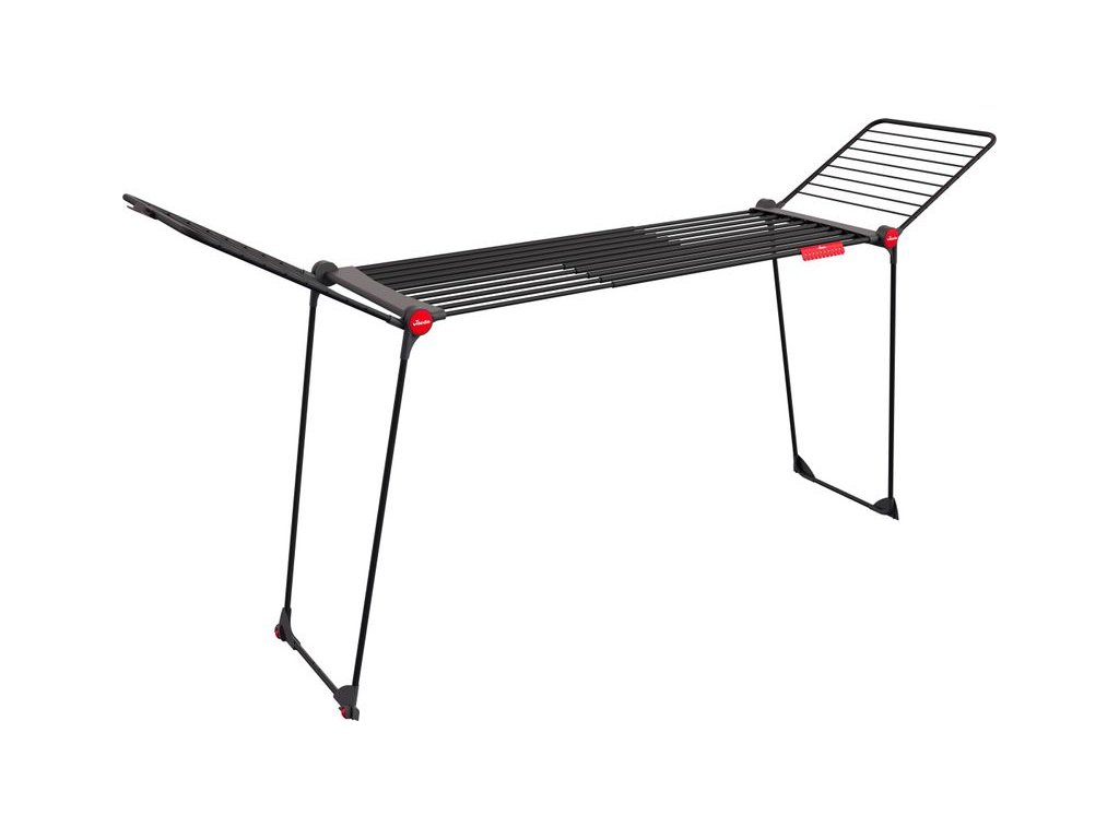 Praktický a priestranný sušiak na bielizeňv modernom čiernom prevedeníponúka maximálny komfort pri sušení aj veľkých kusov prádla. Vďaka svojmurozťahovaciemu dizajnuje ideálny na sušenie posteľnej bielizne, obrusov alebo dlhších odevov.