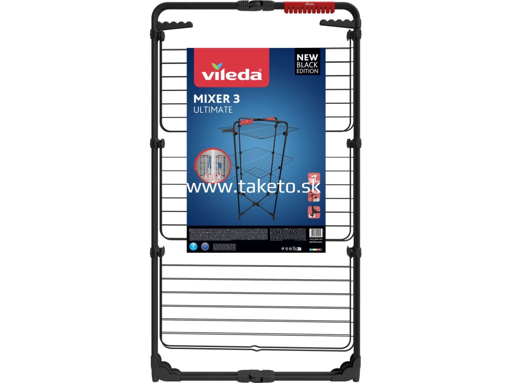Objavte nové matne čierne prevedenie sušiaku Vileda Mixer 3 – moderný, praktický a mimoriadne flexibilný sušiak na bielizeň, ktorý sa dokonale prispôsobí vašim potrebám. Tento troj-úrovňový oceľový sušiak ponúka sušiacu plochu až 30 metrov, čo zodpovedá bielizni z troch práčok. Je ideálnym riešením pre malé byty, kúpeľne či balkóny, pretože umožňuje maximálne využitie priestoru.