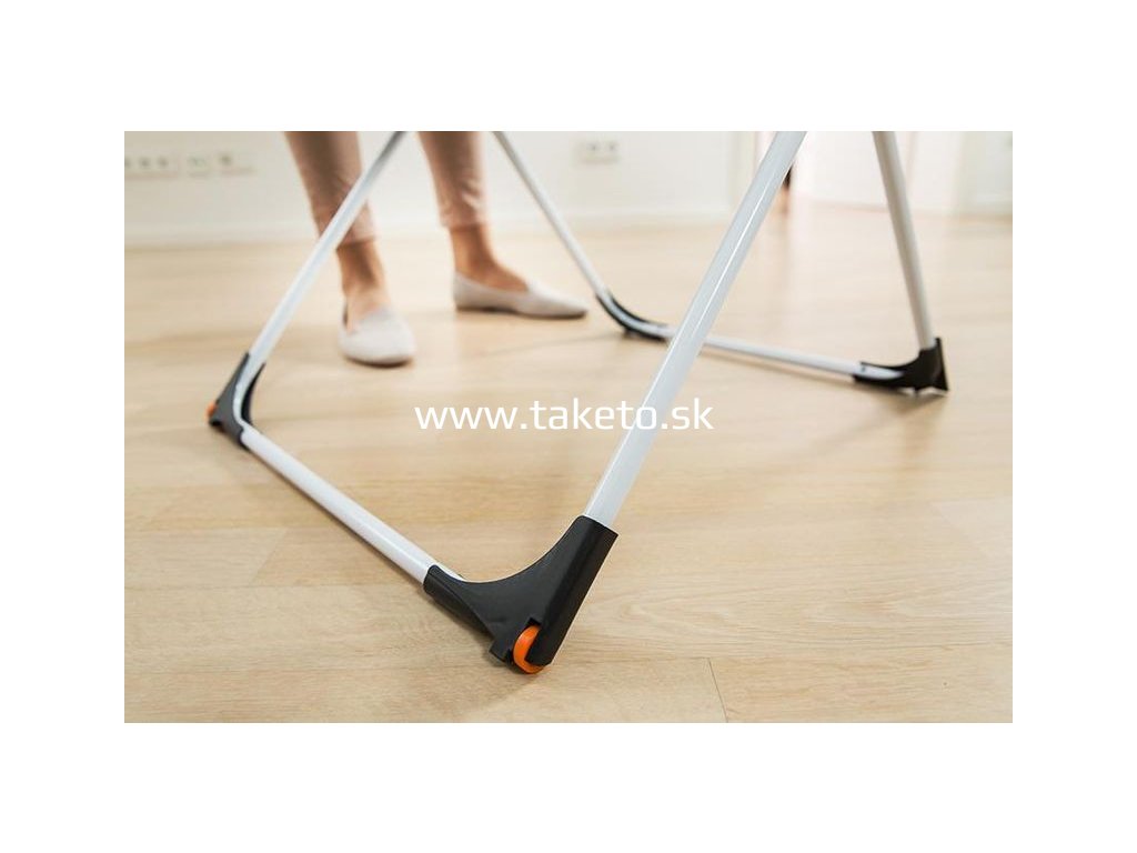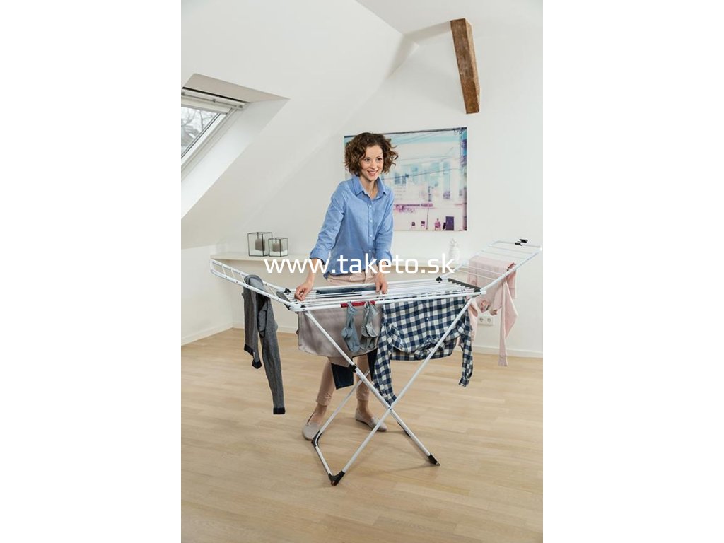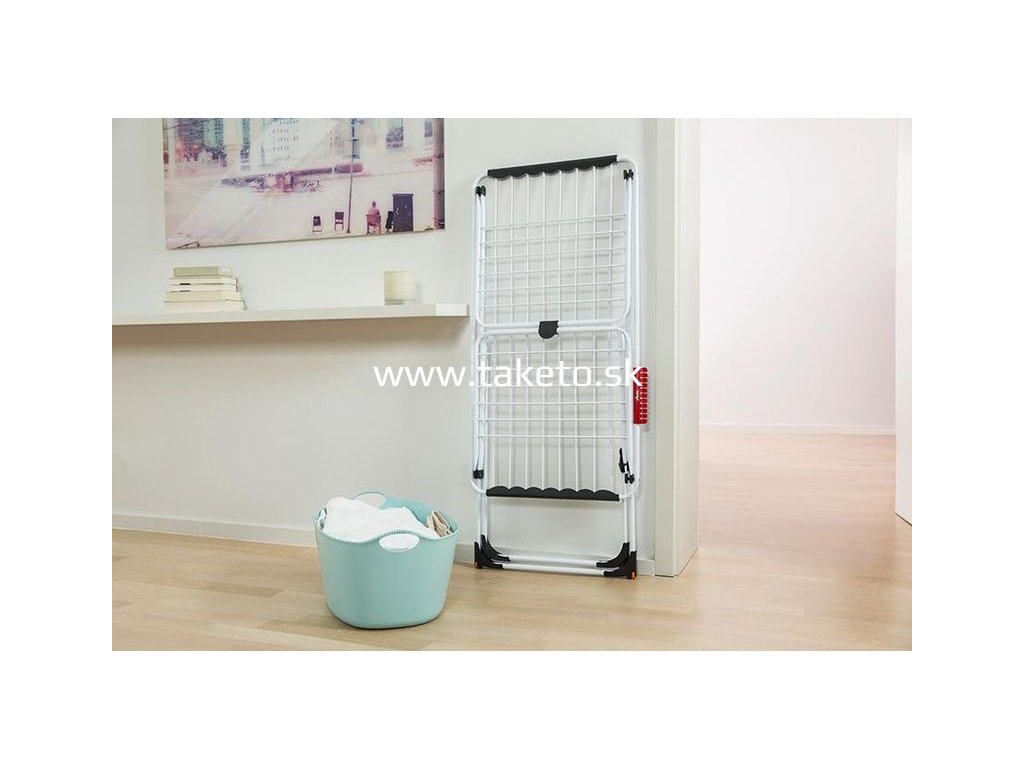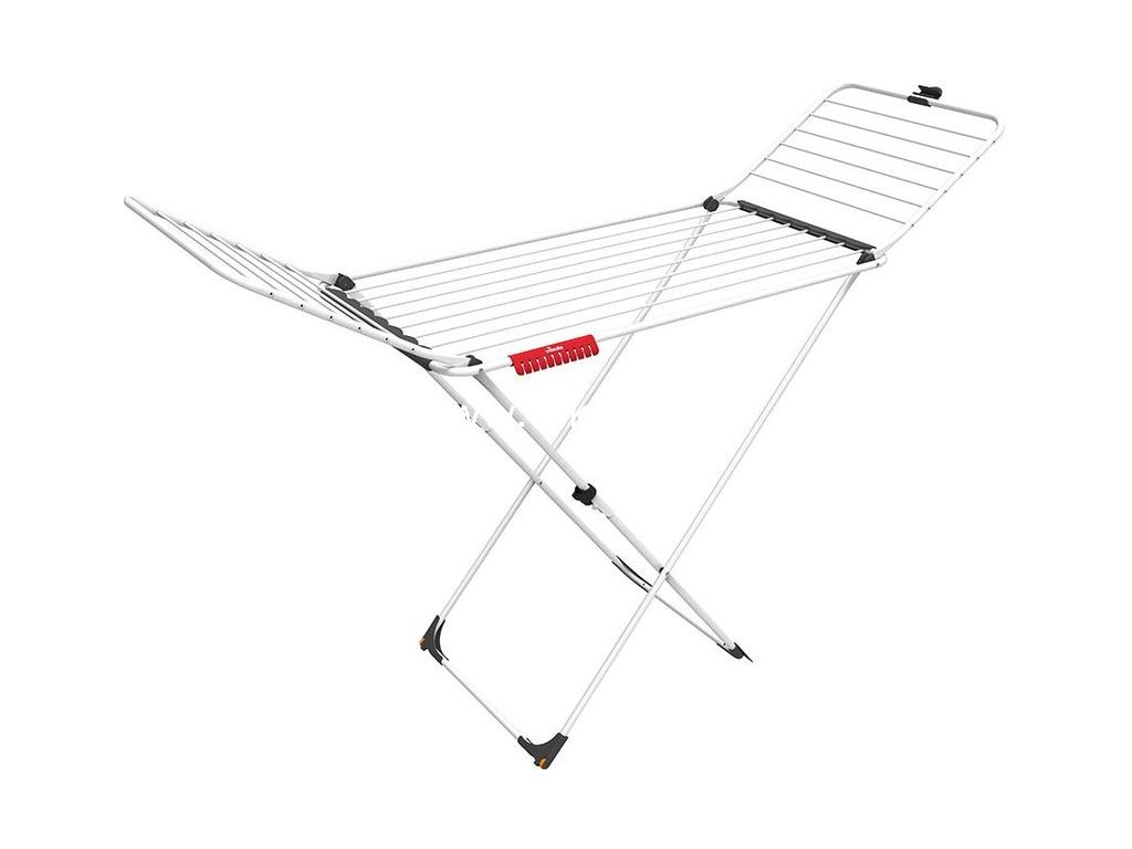 Náš sušiak Vileda Extra na kolieskach prináša do vášho vybavenia domácnosti nádych čerstvého vzduchu. Tento vnútorný sušiak, v prevedení nôh do tvaru X, má silné drôty, ktoré zabránia mačkaniu bielizne. Vďaka všetkému príslušenstvu poskytuje veľmi pohodlné a bezpečné používanie. Jediným pohybom zavesíte svoje malé kúsky oblečenia na červený prídavný držiak. Kolieska uľahčujú pohyb a premiestňovanie a bezpečnostný kĺb zabráni náhodnému zloženiu sušiaku počas presunu.