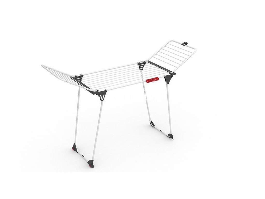 Sušiak Vileda King prichádza s bezpečným a stabilným dizajnom v kombinácii hliníka a železa. S maximálnou sušiacou plochou 20 metrov je tento sušiak s krídlami nenahraditeľným pomocníkom pre vašu dennú rutinu s bielizňou. Využite jeho výhody a vyskúšajte zážitok zo špičkového sušenia bielizne. VďakaXXL drôtomvám pomáha sušiak Vileda King dosiahnuť menej záhybov na odevoch počas sušenia, čo následne skracuje čas žehlenia. Priestor a pohyblivosť sú dve najdôležitejšie vlastnosti, pokiaľ ide o sušiaky a sušenie bielizne.