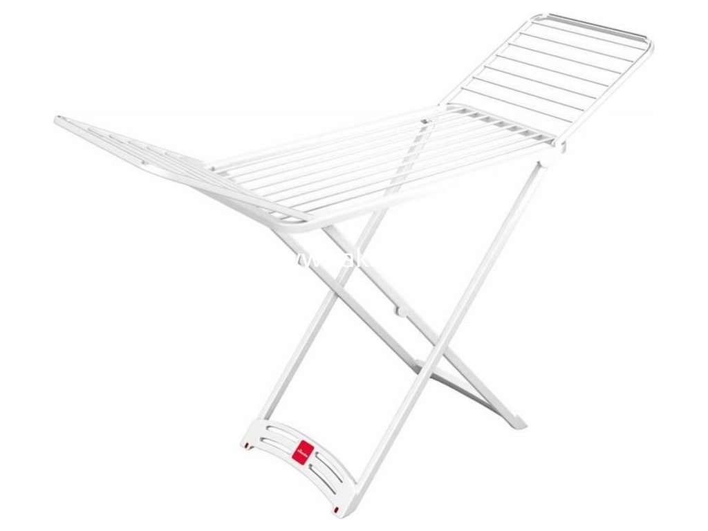 Použitý materiál zaisťuje stabilitu a robustnosť sušiaku, čo vám umožní jednoducho a bezpečne zavesiť bielizeň. Praktické použitie vďaka kolieskam, ktoré vám umožnia jednoduché premiestňovanie i pri naplnenom sušiaku, navyše je vybavený bezpečnostnou poistkou, ktorá zabraňuje akémukoľvek náhodnému zloženiu.