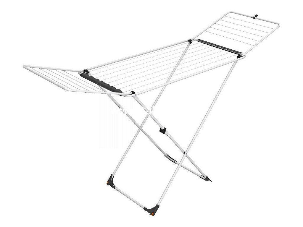 Perfektný sušiak s príslušenstvom pre ľahké sušenie vašej každodennej bielizne. Sušiaca plocha: 18 m, ideálna na každodenné použitie. Jednoduché a rýchle skladanie vďaka skladacím nohám je doplnené bezpečnostným kĺbom, ktorý zabraňuje náhodnému zloženiu sušiaku pri prenose. Bezpečnostný zámok bočných krídiel. Rozmer rozložený (š × h × v): 180 × 55 × 93 cm. Rozmer zložený (š × h × v): 55 × 5 × 129 cm. Pevný oceľový rám s bezpečnostným mechanizmom, ktorý zabraňuje náhodnému zloženiu. S kolieskami pre ľahké premiestnenie. Kompaktná veľkosť a bezpečný skladací mechanizmus na jednoduché skladovanie. Hmotnosť: 2,6 kg