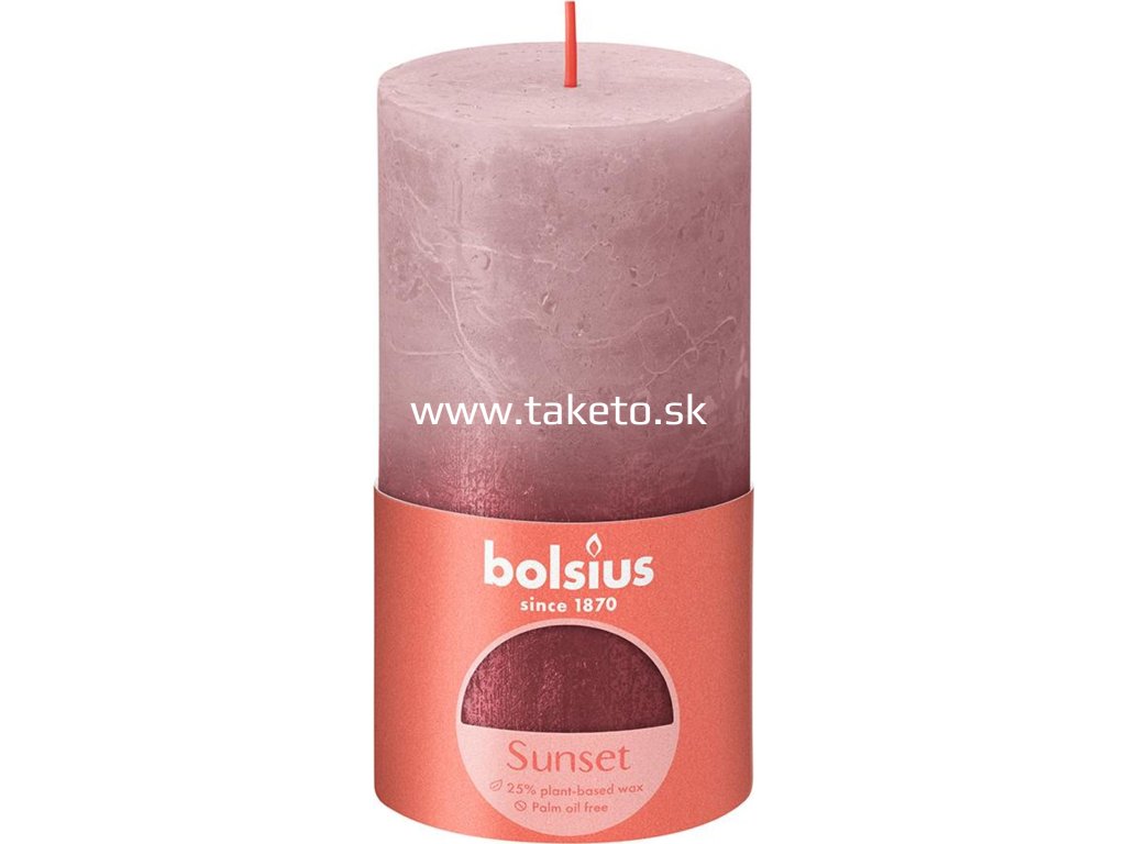 Sviečka Bolsius Rustic, valcová, Vianoce, Sunset Ash Rose+ Red, 130/68 mm + praktický pomocník k objednávke
