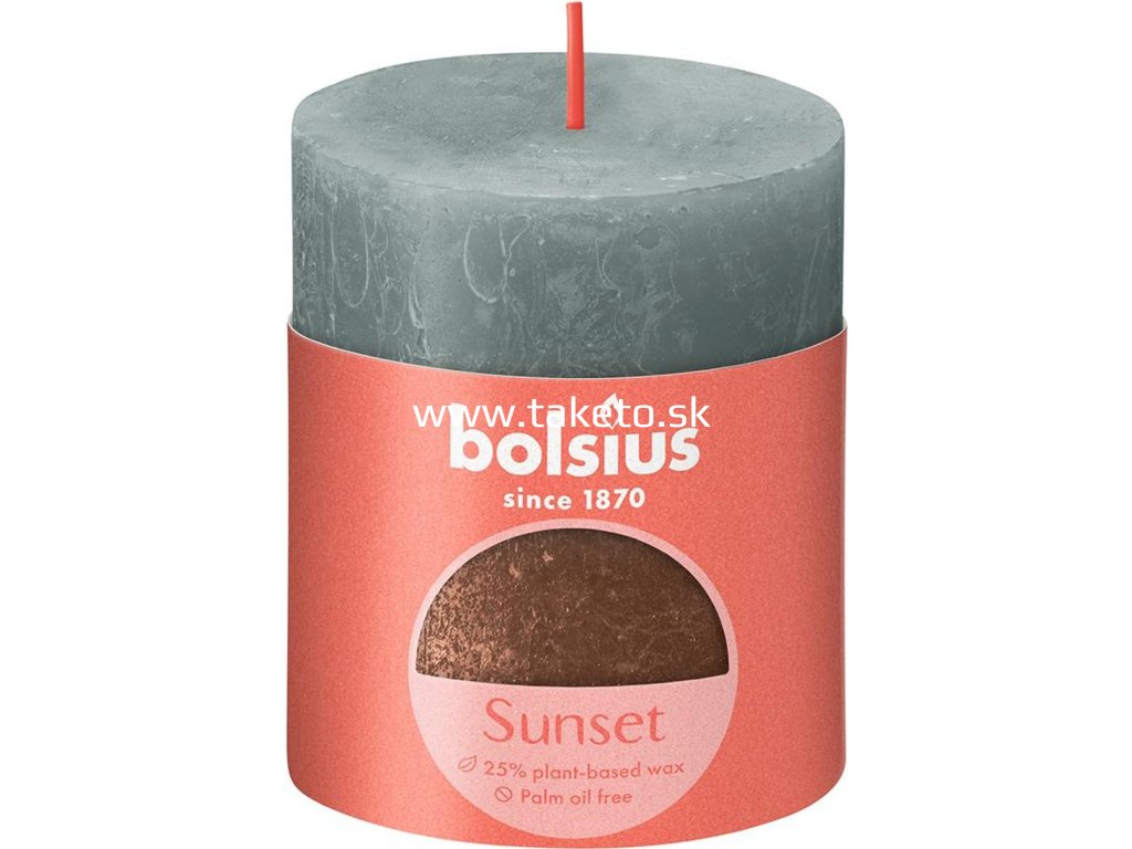 Sviečka Bolsius Rustic, valcová, Vianoce, Sunset Eucalyptus Green+ Copper, 80/68 mm + praktický pomocník k objednávke