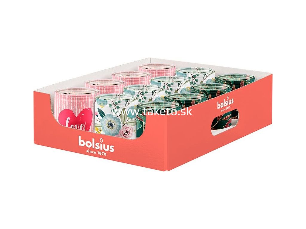 Sviečka Bolsius Star.glas Love, 82/68 mm, v skle, . + praktický pomocník k objednávke