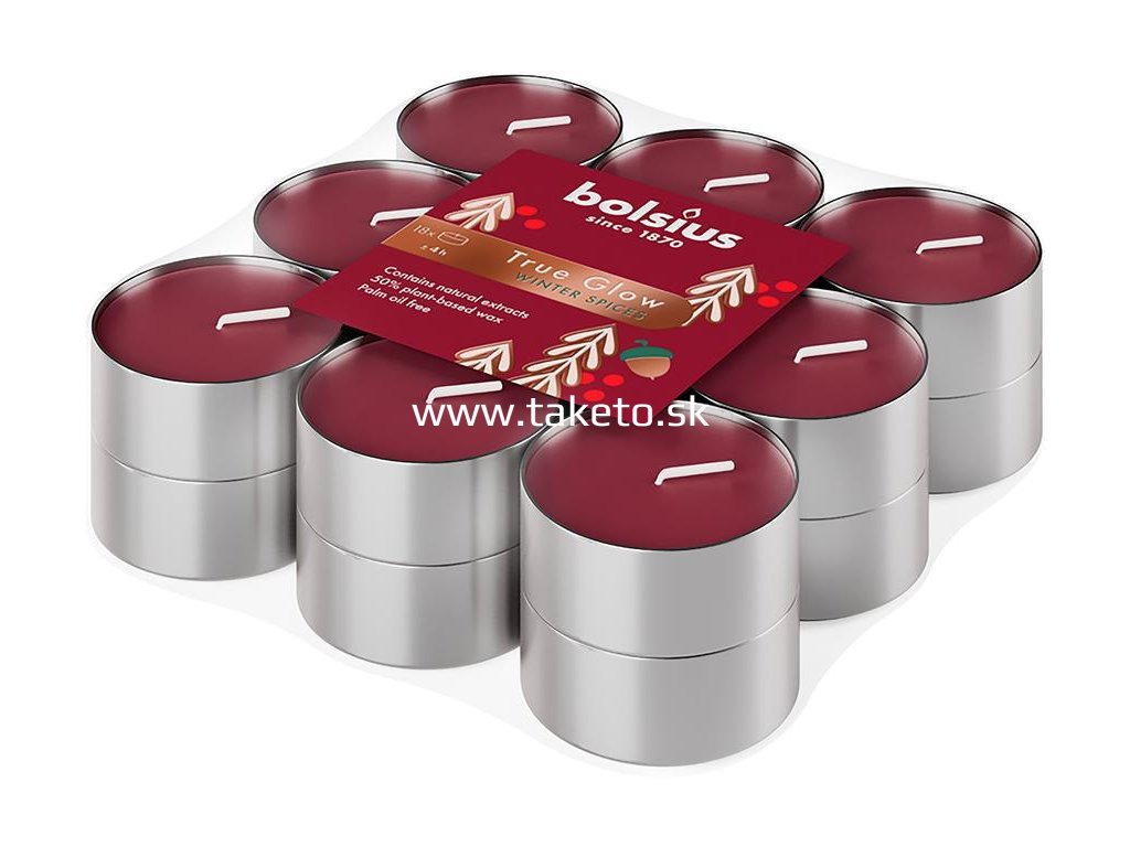Sviečka Bolsius Starlight Zimné korenie, Vianoce, vínová červená, čajová, 4 hod., bal. 18 ks + praktický pomocník k objednávke