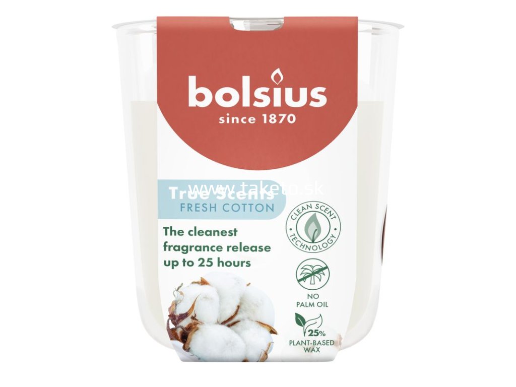 Bolsius True Scents – Vonná sviečka v skle, čerstvá bavlna, 80 × 73 mm