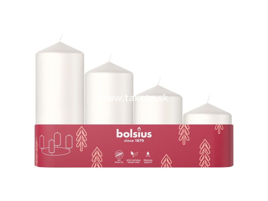Sviečky Bolsius Pillar Advent, Vianoce, biele, 60/80/100/120x48 mm, bal. 4 ks + praktický pomocník k objednávke