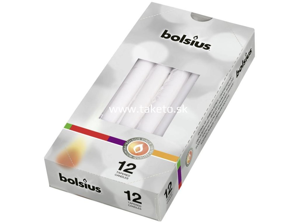 Sviečky bolsius Tapered 245/24 mm, klasické biele, bal. 12 ks + praktický pomocník k objednávke