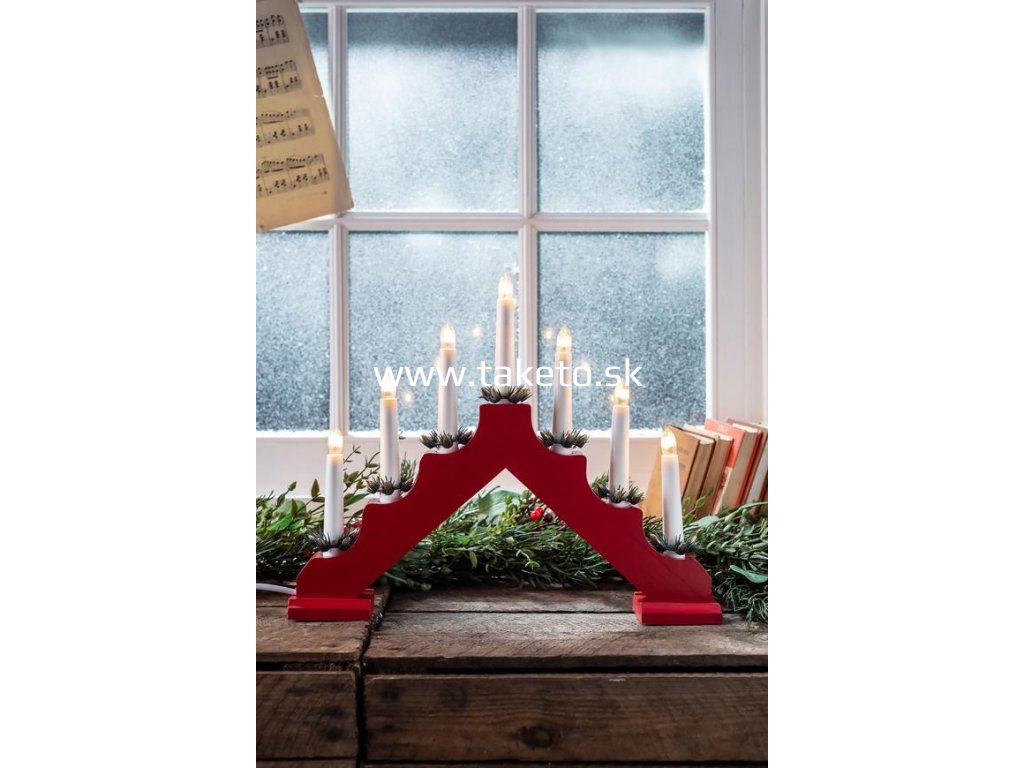 Svietnik MagicHome Vianoce, 7x LED teplá biela, červený, 2xAA, interiér, 39x31 cm + praktický pomocník k objednávke