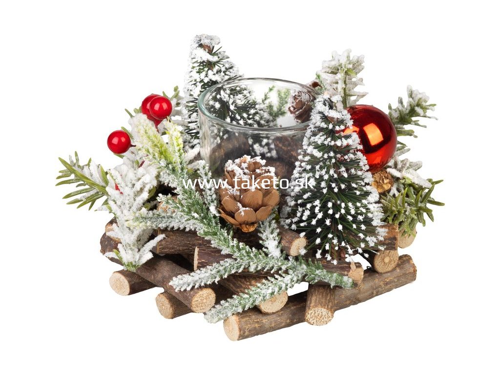 Vytvorte vo svojom domove kúzelnú vianočnú atmosféru s prírodným svietnikom MagicHome. Dekorácia je vyrobená z prírodných materiálov a zdobená drobnými vianočnými stromčekmi, šiškami, červenými bobuľkami a snehovým efektom, ktoré dokonale navodia zimnú pohodu.