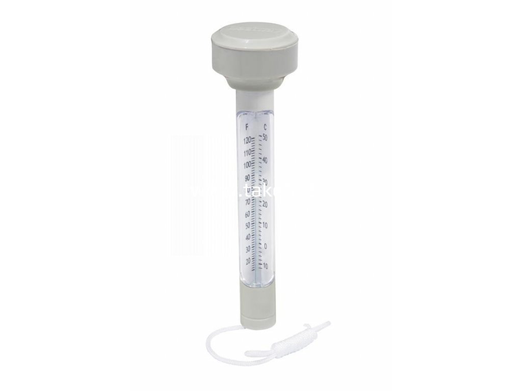 Plávajúci teplomer do bazéna Bestway® FlowClear™ 58072 disponuje jednoducho čítateľnou stupnicou. Teplomer zobrazuje hodnoty v stupňoch Celsia aj Fahrenheita. Teplomer z ABS konštrukcie sa pripevňuje pomocou pásika na bazén, aby zostal na mieste.