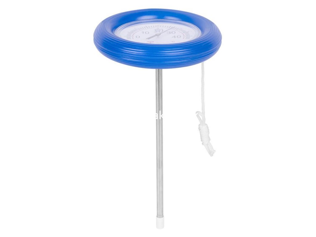 Okrúhly plávajúci teplomer presne merá teplotu vody. Zobrazuje hodnoty v stupňoch Celsia.