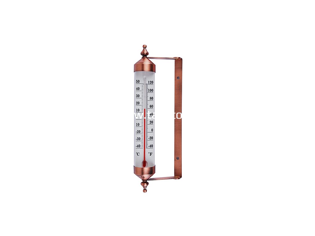 Vonkajší kovový teplomer Strend Pro meria teplotu v rozsahu od 50°C do -40°C. Rozmery: 245x80x28 mm.