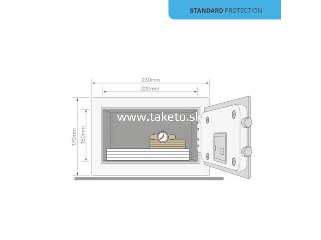 Menšie trezory poskytujú dostatočnú ochranu pre dôležité drobné predmety, ako sú cestovné doklady, rodné listy, kreditné karty, peniaze a kľúče. Trezor sa otvára pomocou 3-8miestneho užívateľského kódu. Pre núdzové otvorenie je k dispozícii prekonateľný mechanický zámok s kľúčom.